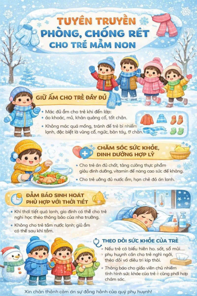 Nhà trường rất mong nhận được sự phối hợp tích cực của các bậc phụ huynh để các con luôn khỏe mạnh, an toàn trong mùa đông.