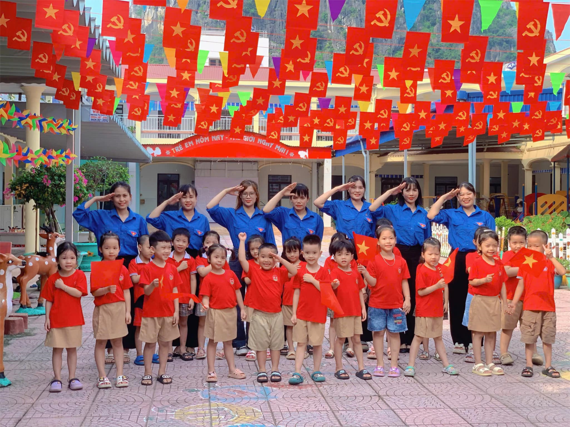 Hòa chung không khí thi đua sôi nổi của toàn Đảng, toàn dân chào mừng Đại hội Đảng bộ phường Bạch Đằng lần thứ nhất nhiệm kỳ 2025 – 2030. Trường Mầm non Minh Đức rực rỡ sắc đỏ với cờ tổ quốc, cờ Đảng. Các khẩu hiệu được treo ở vị trí nổi bật nhằm truyền tải thông điệp ý nghĩa đến cán bộ, giáo viên, nhân viên và phụ huynh học sinh.