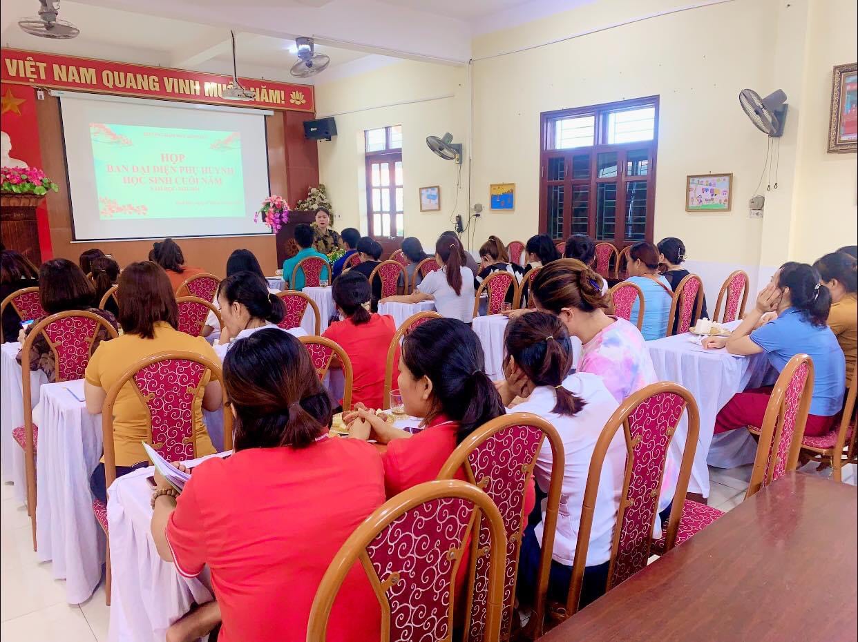 Trong buổi họp đồng chí Bá Thị Hồng Ánh-Bí thư chi bộ; Hiệu trưởn nhà trường đã tóm tắt các hoạt động và những thành tích đã đạt được của nhà trường trong năm học 2023-2024, đồng thời gửi lời cảm ơn tới các bậc Phụ huynh đã luôn đồng hành cùng các con trong tất các các hoạt động,lễ hội, sự kiện của nhà trường trong năm học.