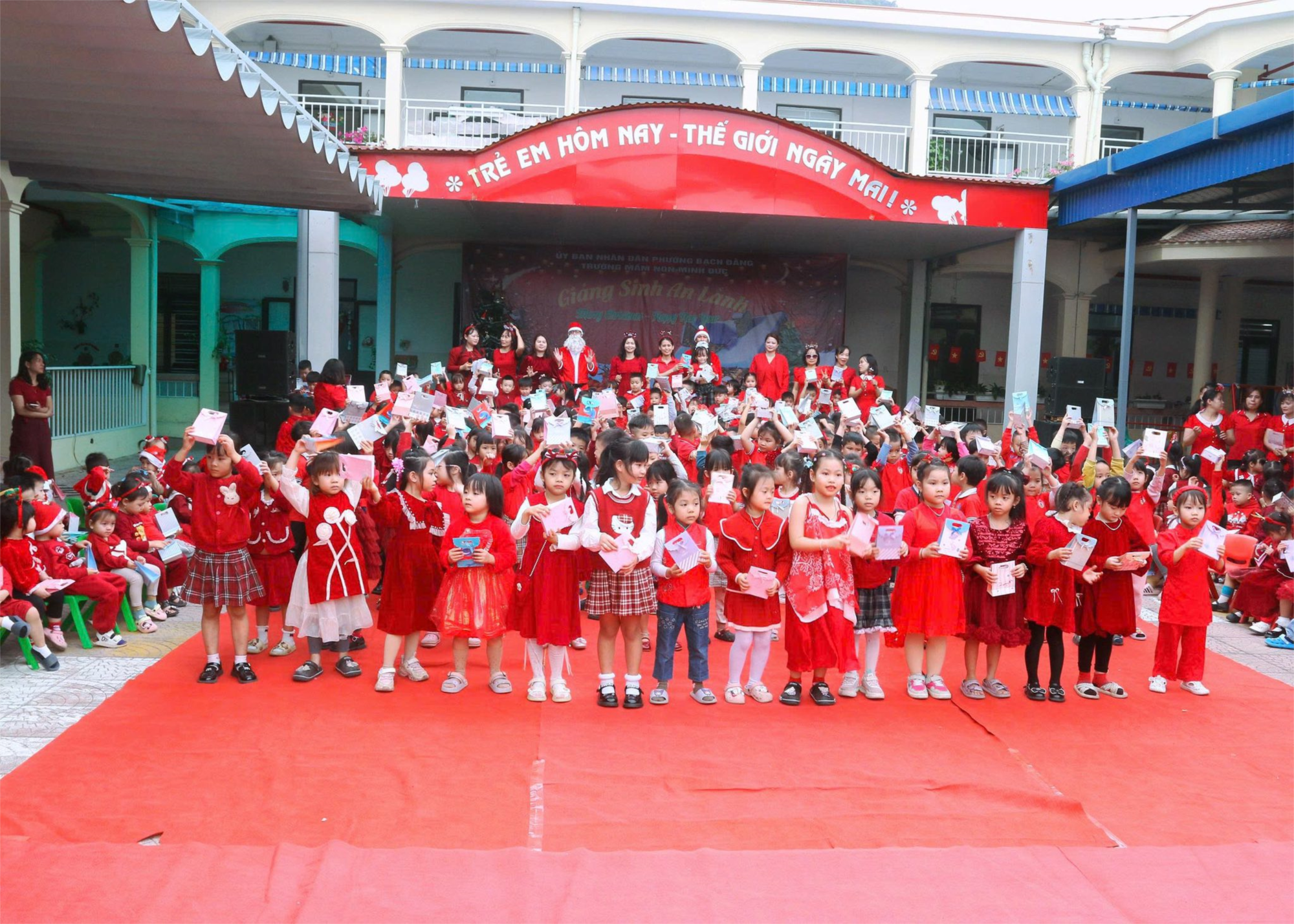 Sáng ngày 24/12/2025, không khí tại trường Mầm non Minh Đức bỗng trở nên rộn ràng và ấm áp hơn bao giờ hết. Những gương mặt rạng rỡ, những bộ đồ ông già Noel nhí đáng yêu đã biến ngôi trường thành một "vương quốc tuyết" tràn ngập tiếng cười.