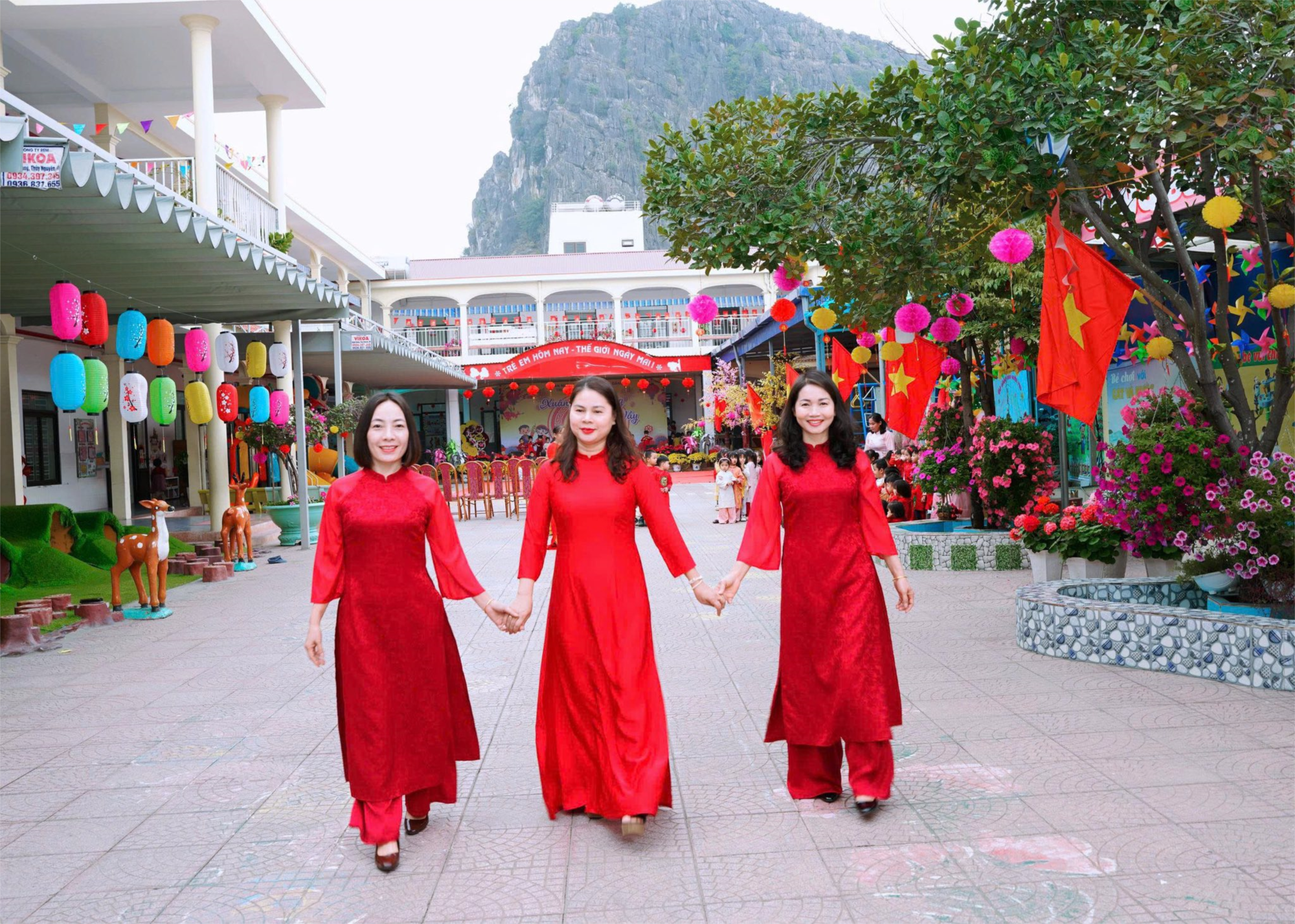 Hình ảnh các cô giáo trong tà áo dài cùng những nụ cười rạng rỡ của các bé đã làm cho mái trường Mầm non Minh Đức thêm tươi vui, tràn đầy yêu thương.