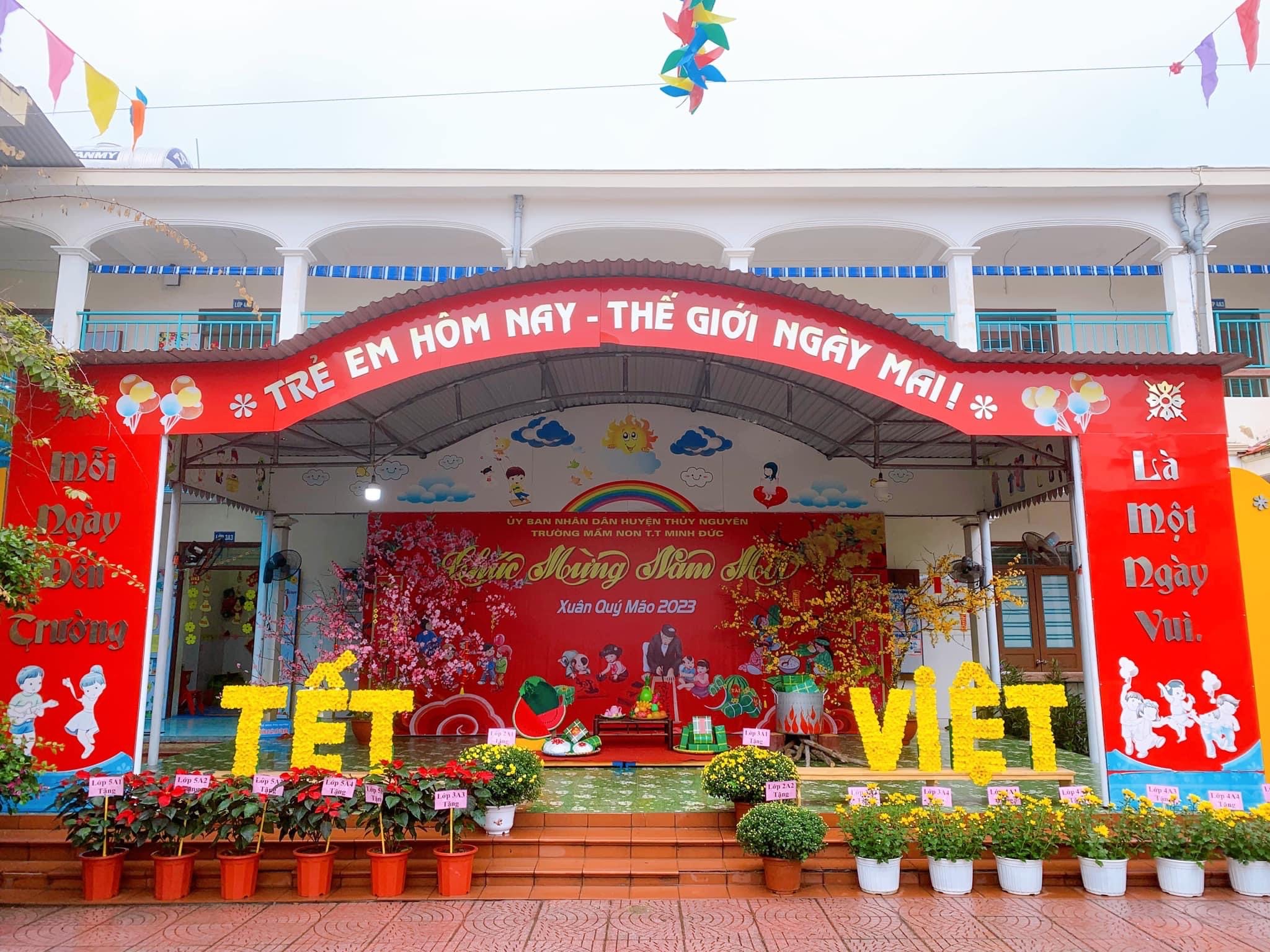Cứ mỗi dịp Tết đến xuân về, các bạn nhỏ trường Mầm Non Minh Đức lại được sống trong không khí vui tươi, rộn ràng với các hoạt động chào đón Tết cổ truyền của dân tộc đầy ý nghĩa. Năm mới đã đến gần. Không khí se se lạnh và tiết trời mưa bay như mấy ngày qua đó cũng là chút hương vị nhè nhẹ điểm tô cho không khí ngày Tết của dân tộc Việt Nam...